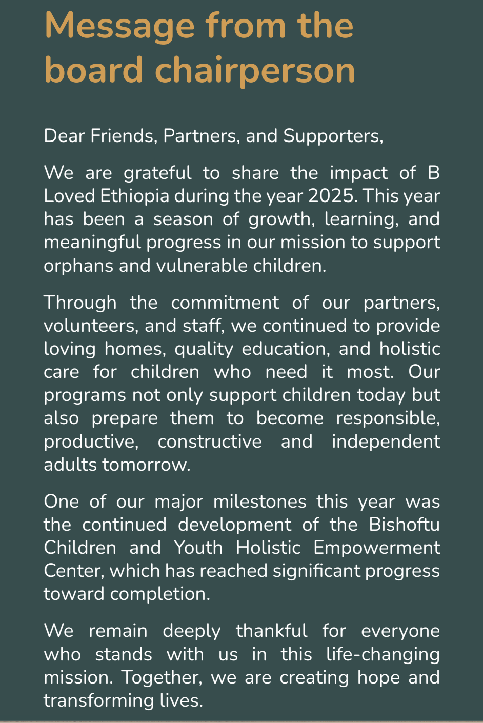 Thanks to your support, 2025 has been a year of incredible growth and transformation at B Loved Ethiopia. Here are some of the highlights of what your generosity is making possible: